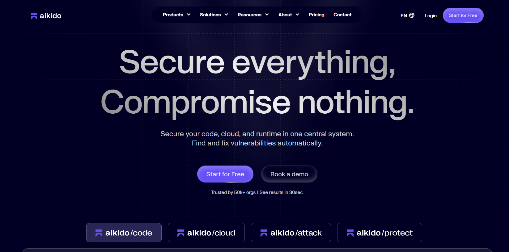 - Aikido: Clear, all-in-one pricing with costs that stay the same no matter how big the codebase is. This makes it easier for teams to scale while maintaining a reliable cybersecurity product approach.