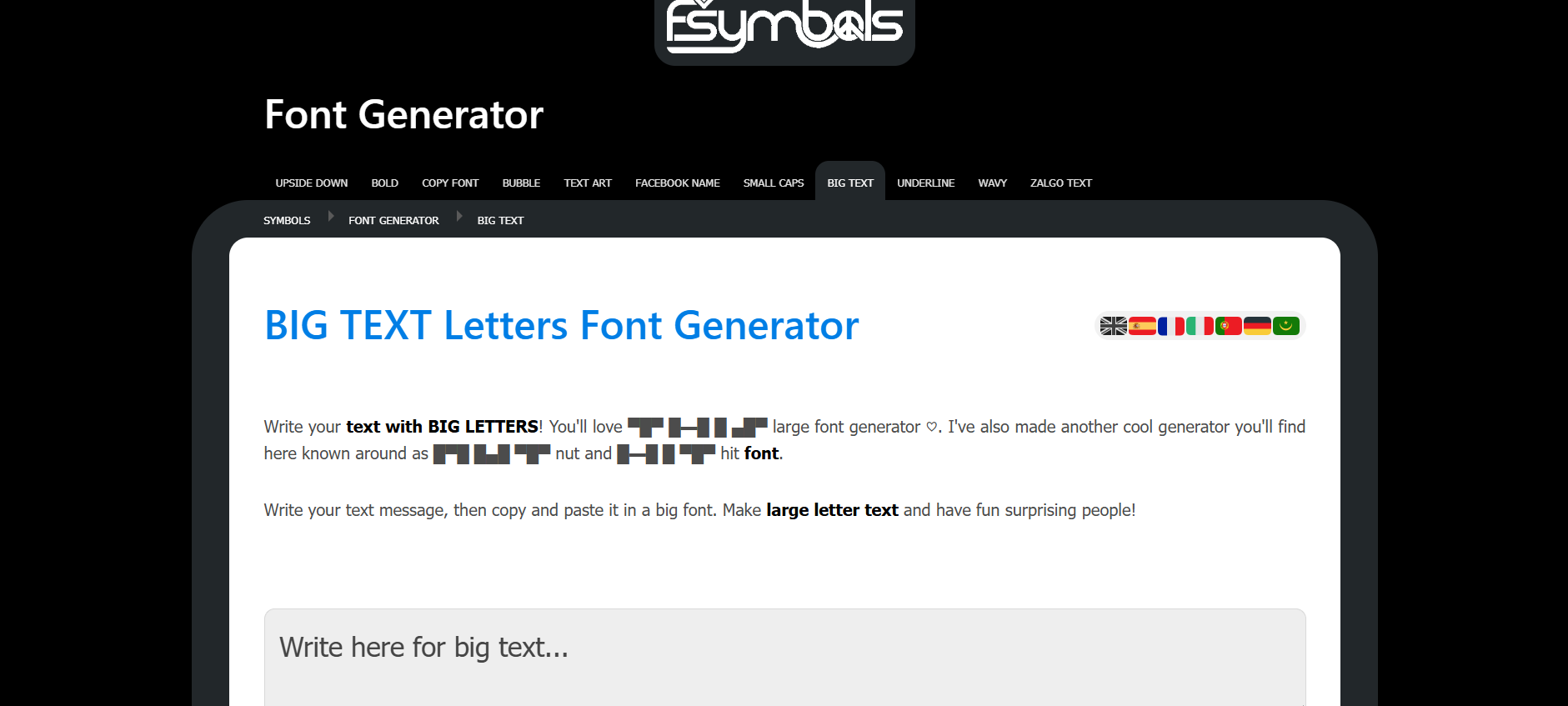 A big text generator is an online tool that converts normal text into large, styled characters using Unicode or ASCII symbols. Instead of simply increasing font size as you would in Word, Google Docs, or Canva, these tools replace your letters with alternative characters that look bigger, bolder, or more decorative.