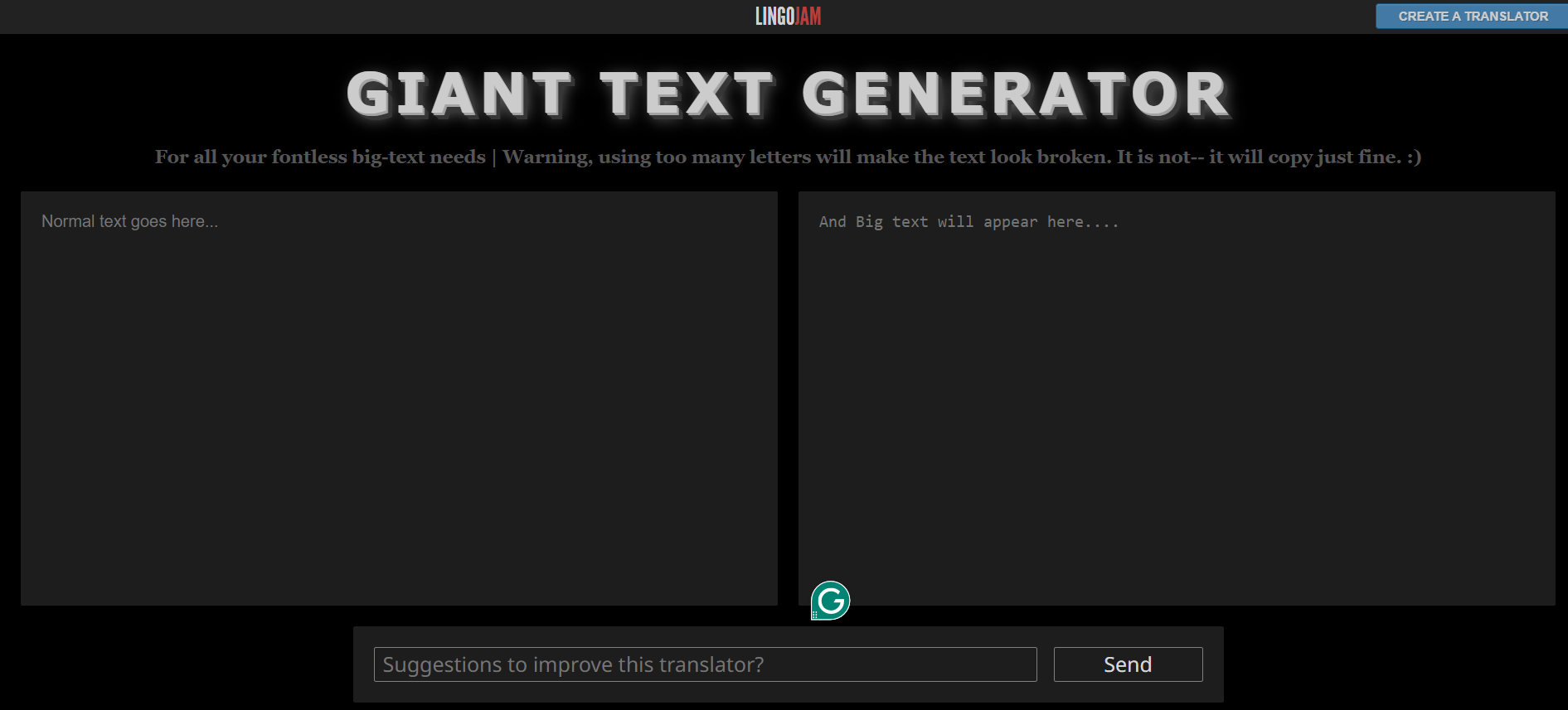 LingoJam is one of the most popular text styling tools online. It’s extremely simple: type in the left box, and instantly see multiple big and bold variations on the right.