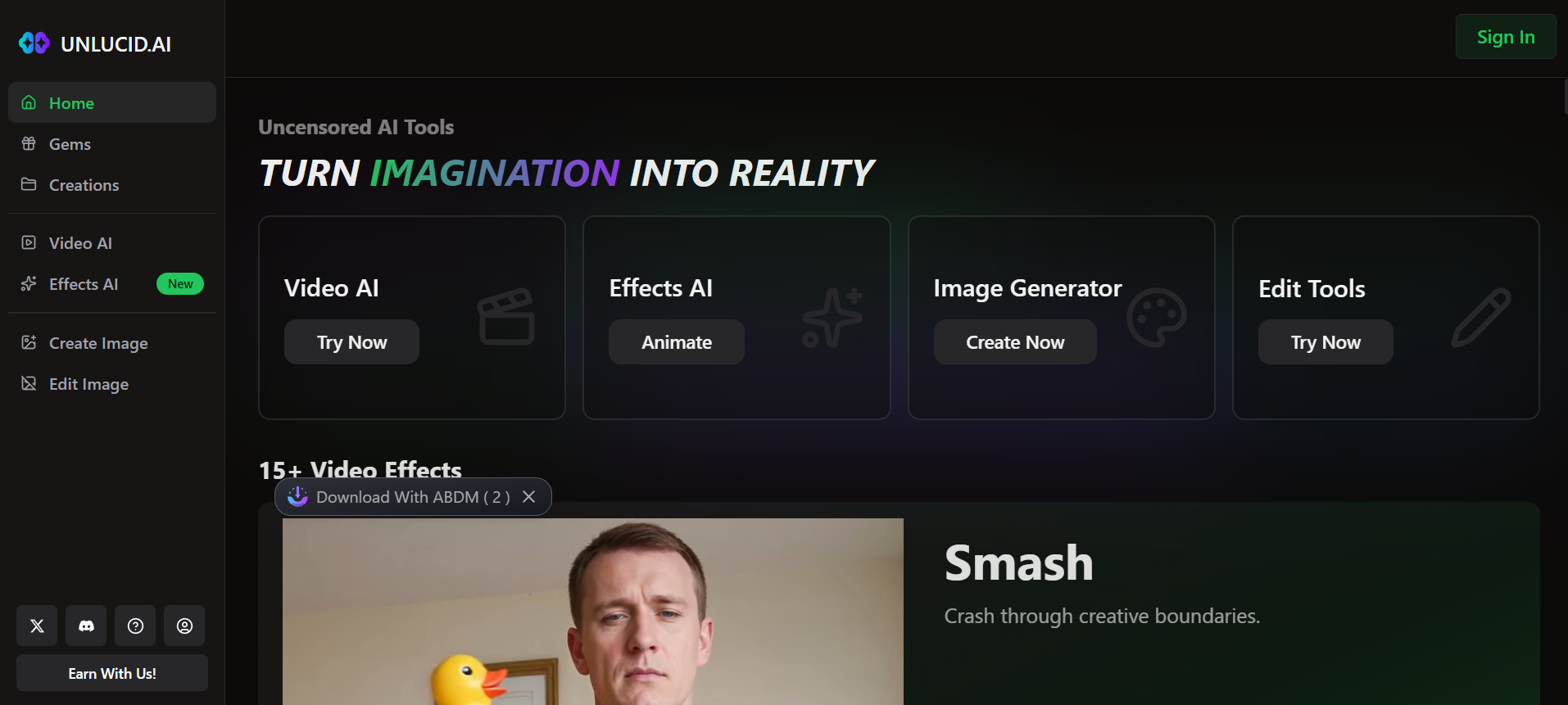 At its core, Unlucid AI shines when you want fast visual results. Social media clips, animated images, quick transitions, stylized motion effects, and eye-catching visuals are where it feels most at home. You’re not meant to sit there refining tiny details — you’re meant to generate, test, and move on.