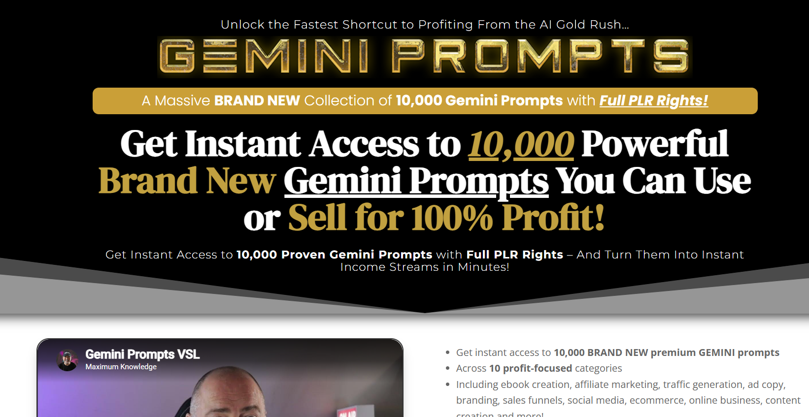 Most people using AI today are still stuck in the “Stone Age” of prompting. They ask basic questions and get basic, robotic answers. But as we move further into 2026, the gap between those who “chat” with AI and those who “engineer” results is becoming a massive financial divide. The reality is that most PLR (Private Label Rights) packages are digital junk—rehashed content from three years ago that doesn’t work on modern LLMs like Google Gemini. So, when a package claiming to offer high-level Gemini prompts with full resale rights hits the market, it’s natural to be skeptical. Is this a legitimate business-in-a-box, or just another collection of prompts you could have found for free on a subreddit?