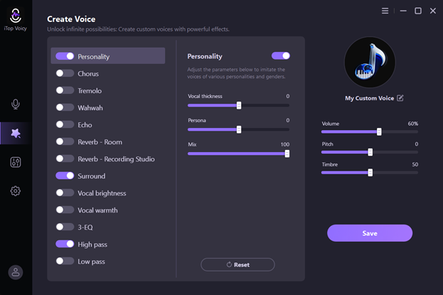 iTop Voicy provides the entire rich voice-altering experience, including the instruments of real-time effect, preset voice, custom voice-making technology, sound effects, and an in-built recording. When properly configured and used with presets and custom tools, anyone, including amateur gamers and content developers, can create different voices that are unique and expressive. No matter whether you are streaming, dubbing videos, role-playing characters, or just facing the computer screen to have fun, we give you the flexibility and the creative power to make your voice instantly and professionally better during moments where you need it.