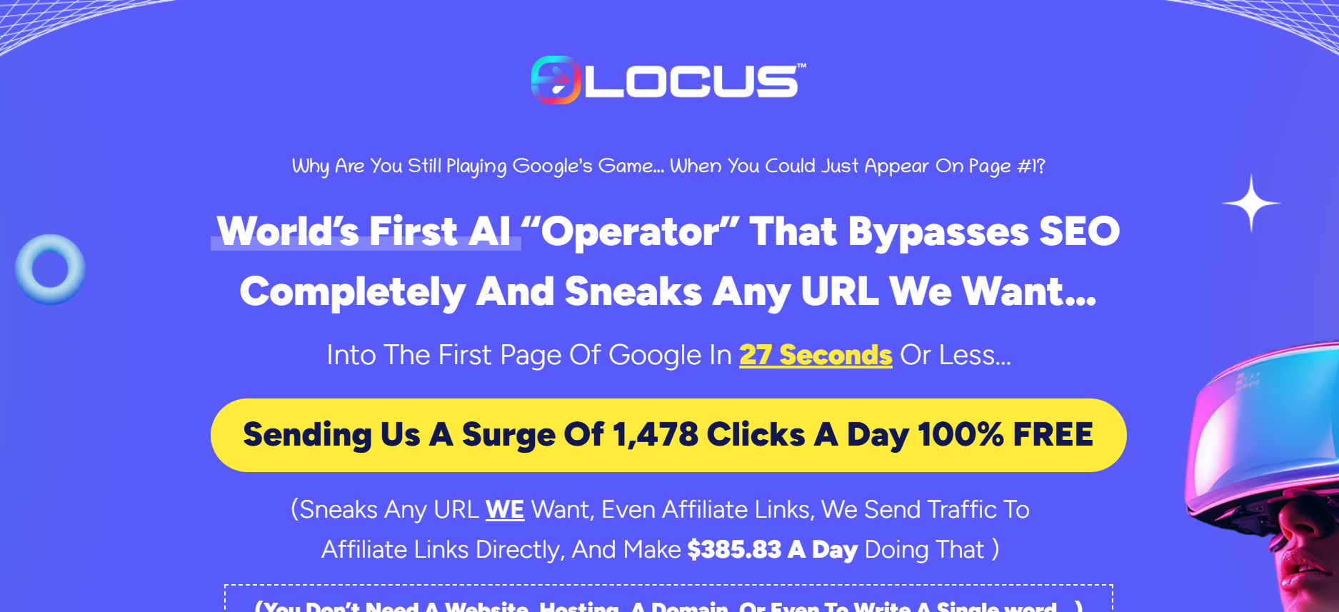 LOCUS Pro is an AI-driven “Traffic Injection” platform that moves away from the traditional concept of “ranking” a website. Instead of building a site and waiting for Google to index and reward it, LOCUS identifies existing high-traffic “open doors” within Google’s current search results. It then uses a proprietary AI model to generate highly relevant “replies” or content snippets that allow you to insert your specific URL—be it an affiliate link, a product page, or a lead form—into those active traffic streams. In essence, it treats Google Search not as a static library, but as a live conversation where you can drop your link at the exact moment a buyer is looking for a solution. It eliminates the need for expensive hosting, domain hunting, and the 2,000-word blog posts that used to be the industry standard.