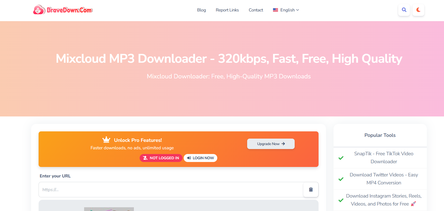 BraveDown is a lightweight online Mixcloud downloader download tool that works perfectly across all browsers. You don’t need to install anything — just paste, download, and listen. It supports MP3 and M4A formats and is compatible with mobile devices, which is great if you’re always on the go.