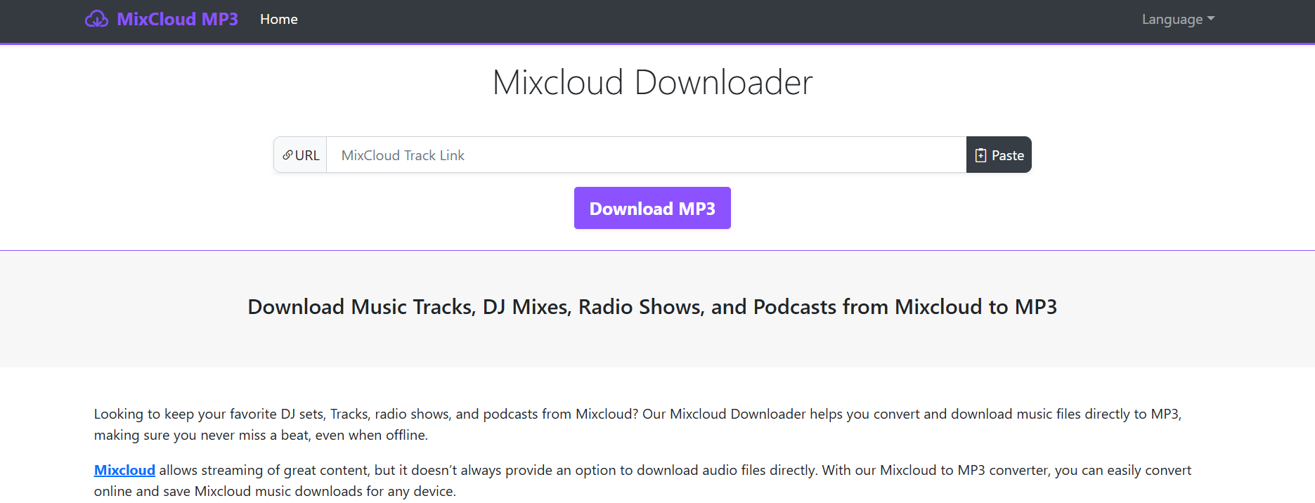 BitDownloader does exactly what its name promises — converts any Mixcloud link into a high-quality MP3 file. It’s simple, mobile-friendly, and doesn’t require registration. If your main goal is quick Mixcloud downloader MP3 conversion, this is your best bet.