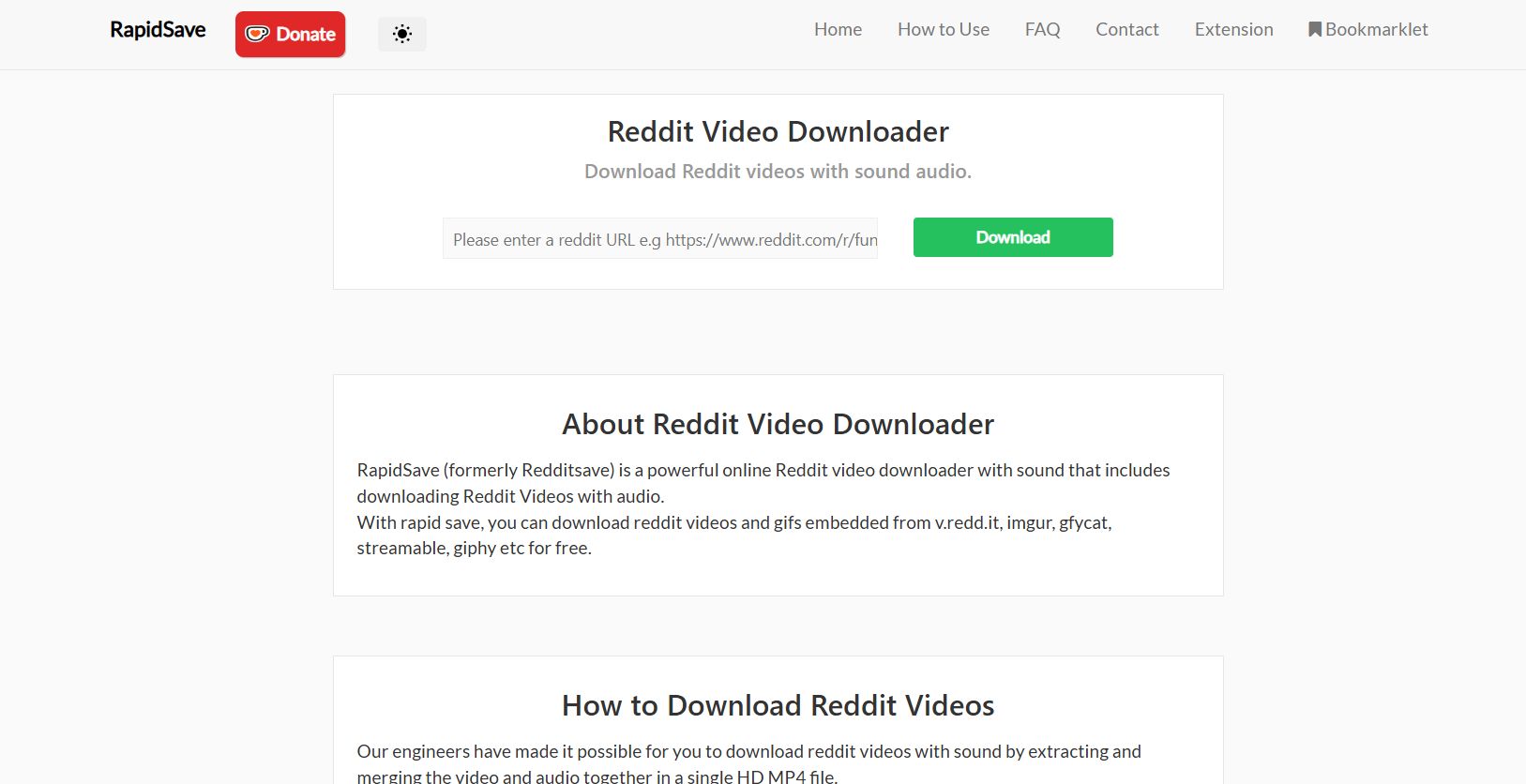 ReddVid is known for its high uptime. When Reddit updates its API, many downloaders break; ReddSave is usually the first to deploy a fix. It is a robust Reddit video downloader that handles even the most complex gallery posts (multiple videos in one thread).