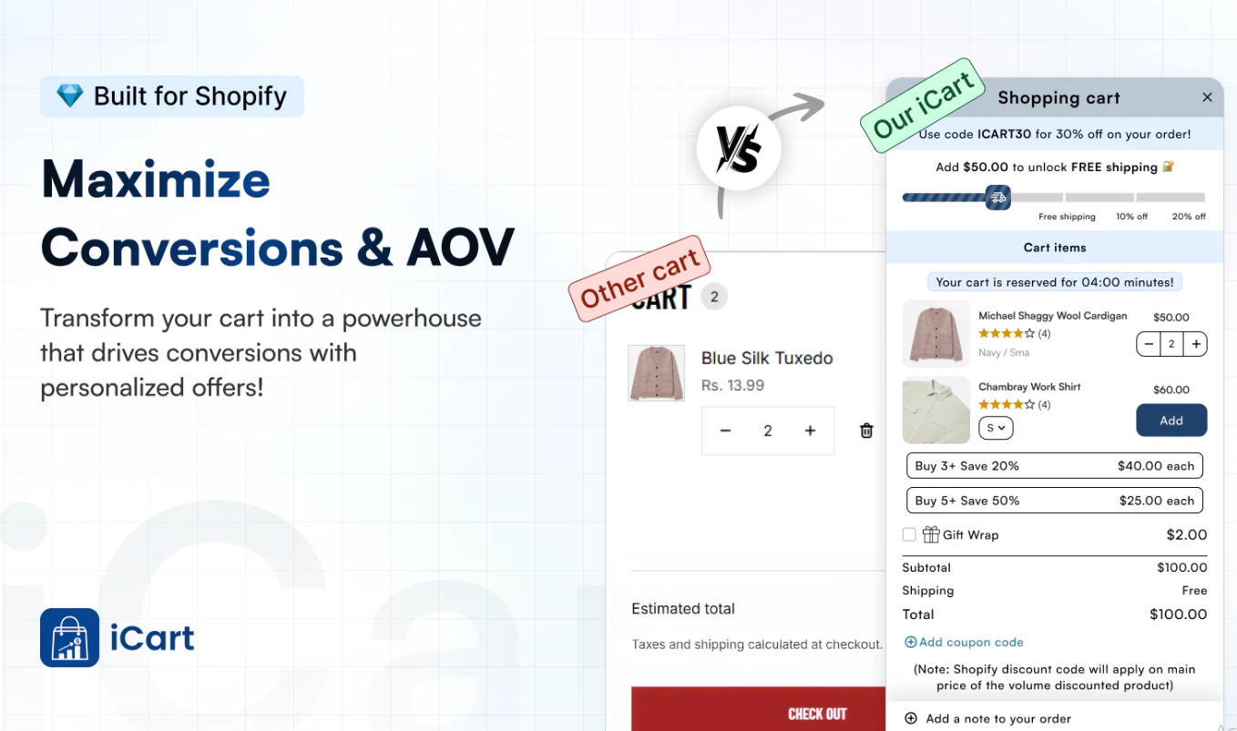 For example, Shopify apps like iCart Cart Drawer Cart Upsell make this process effortless.